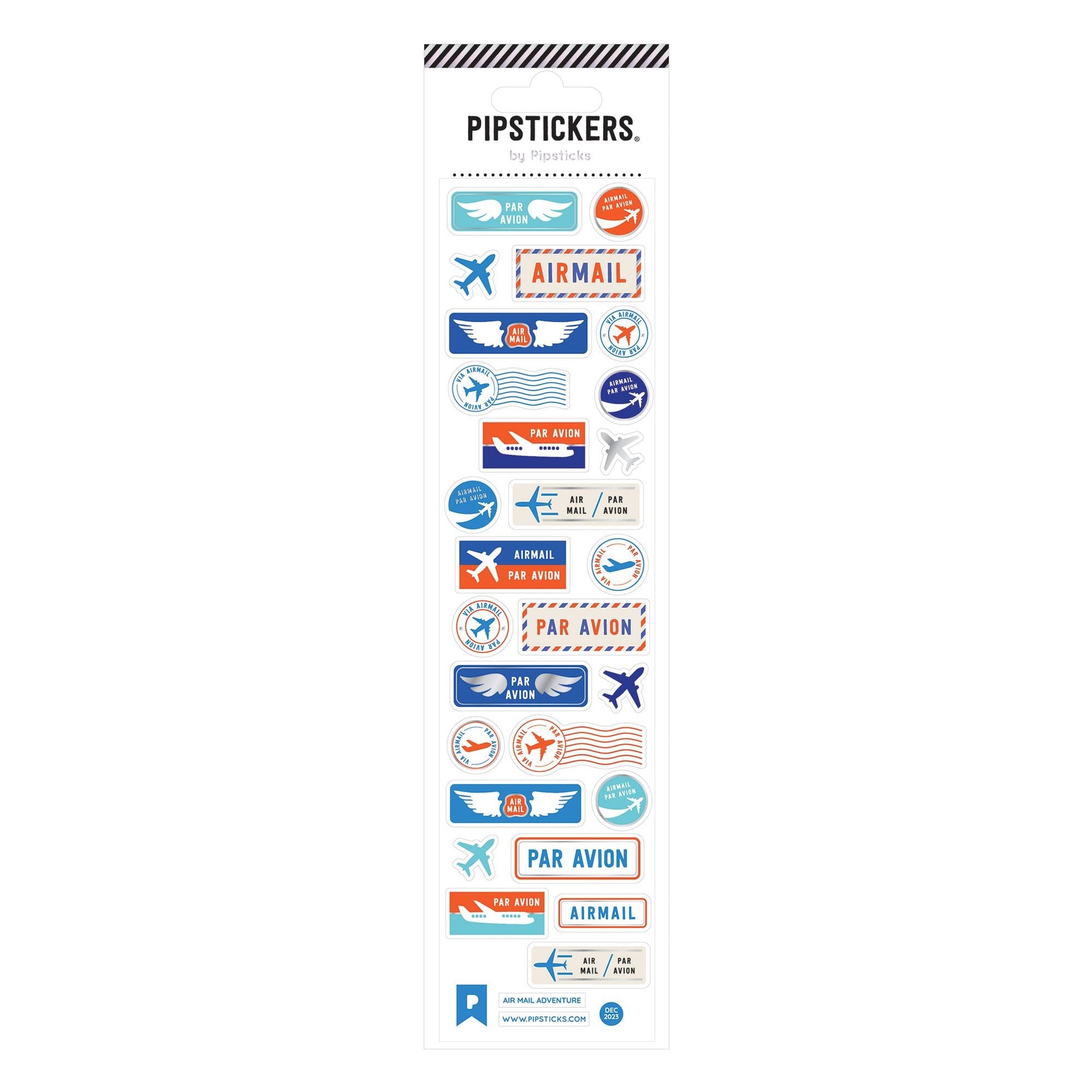 Includes one 2" x 8" sheet of?Air Mail Adventure PipStickers and includes the Pipsticks manifesto.